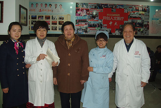 (张女士与医院医生及医护人员合影)