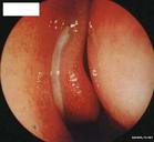 鼻内镜下可见鼻腔粘膜发炎肿大