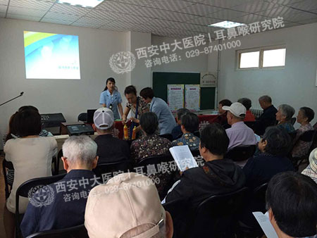 活动邀请到西安新城中大耳鼻喉医院部分名医进社区进行义诊便民服务活动,并为居民进行免费的耳鼻喉内窥镜检查。居民们可从内窥镜的显示器上,清楚的看到自己鼻腔内、耳朵内或者咽喉部疾病病症所在。随后,中大医务人员还为居民们建立健康档案。
