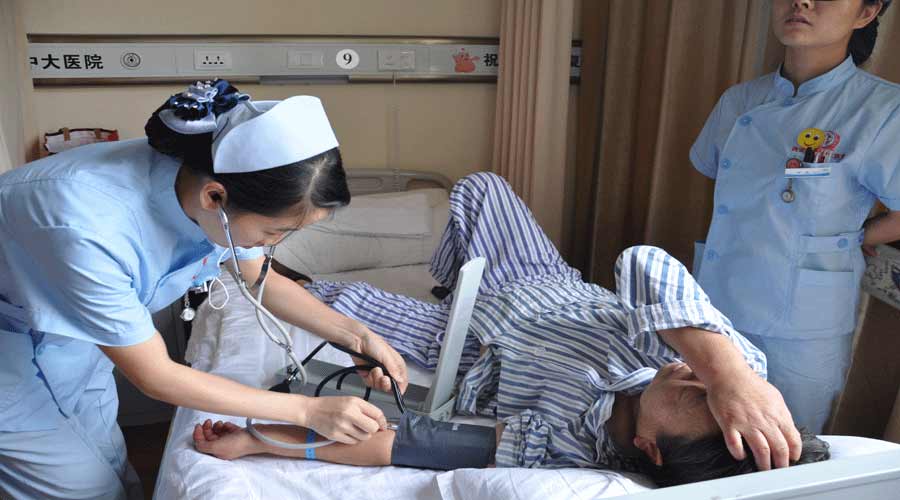 中大护士为肖女士量血压