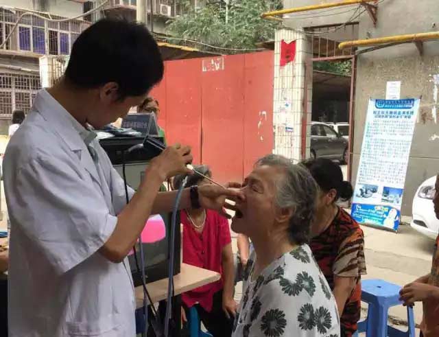 活动现场,中大医护人员为市民免费检查耳鼻喉、测量血压、发放耳鼻喉健康科普宣传资料,对于存在耳鼻喉疾病隐患的居民,医护人员耐心给予日常护理、用药及治疗建议,并认真给居民讲解耳鼻喉疾病的危害及防治,提高居民对耳鼻喉疾病的认识,把公益真正落实到实处,惠济百姓。