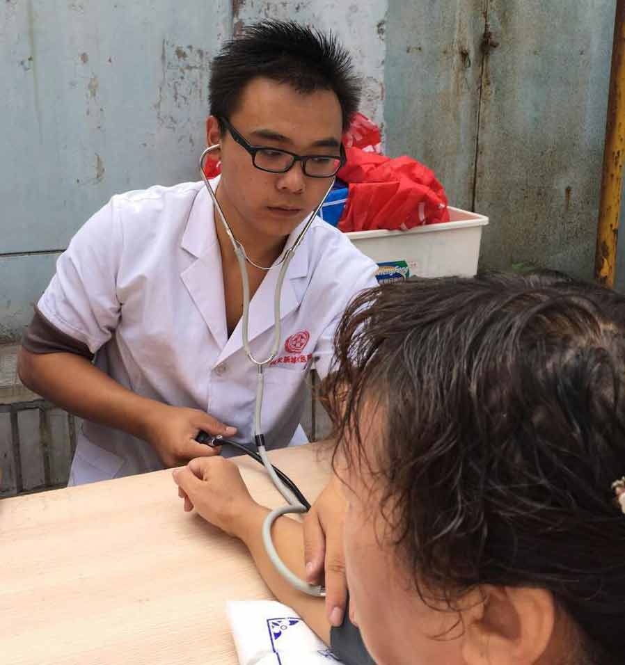 新中社区居民接受血压测量