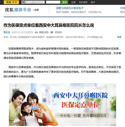 西安新城中大耳鼻喉医院,作为西北地区首家耳鼻喉诊疗与研究的专业医学机构,医保、新农合定点单位,不仅体现了医院自身的实力,更为广大耳鼻喉患者带来了更多层次的优质医疗服务。对于医保看病,大家还有哪些疑问,我们来看看中大院长的回答。