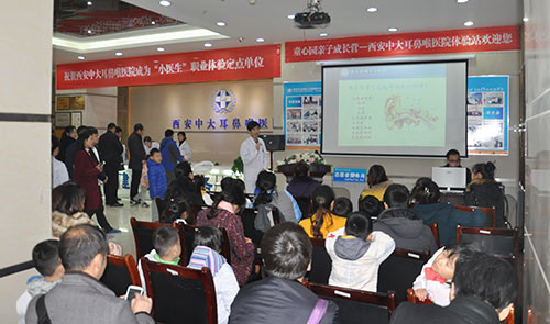 为了让孩子了解到简单的耳鼻喉健康知识,学会关爱自身和父母的健康,12月5日,作为“小医生”职业体验定点单位,西安新城中大耳鼻喉医院协同童心园亲子体验营,合力举办了一场别开生面的耳鼻喉小医生体验活动。