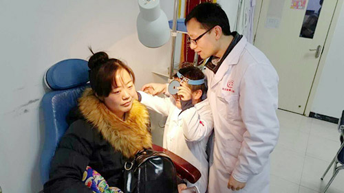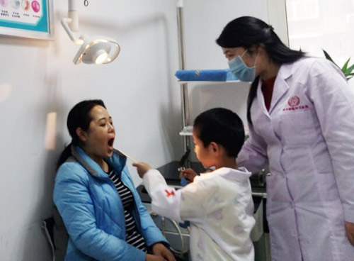 讲课结束后,所有儿童每5人分成一组,由西安新城中大耳鼻喉医院医护人员带领,分别进入各科室进行“小小医生”职业体验,各个诊室医助一对一教导小医生使用额镜、压舌板帮父母检查,让小朋友们过足医生瘾。