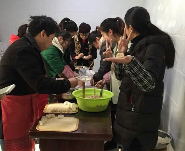 全体人员做完义诊检查后,由环东社区居委会组织,中大义诊医务人员全体参与到为残疾人和孤寡老人举办的包饺子的活动中来。