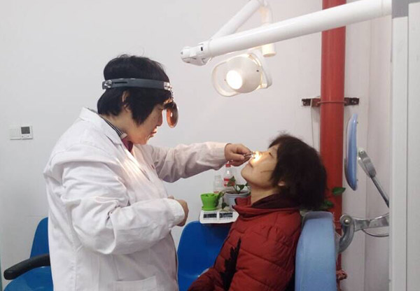 来长荣正在检查鼻窦炎患者情况