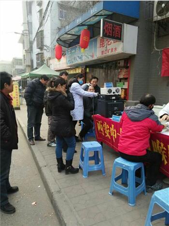 1月7日一大早,在白鹭湾社区龙渠湾37号门前,西安新城中大耳鼻喉医院义诊医生团的医护人员们刚摆好医疗器械就被闻讯赶来的居民们围得水泄不通,现场气氛一下子热烈起来。
