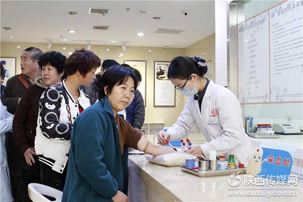 3月2日,医生正忙着在给居民做身体检查。在全国第17个“爱耳日”期间,陕西省聋人协会联合西安新城中大耳鼻喉医院,免费为居民和残障人士做身体检查,同时义诊到社区,方便居民和残障人士了解自己的健康状况,为健康保驾护航。实习生 柯希飞摄