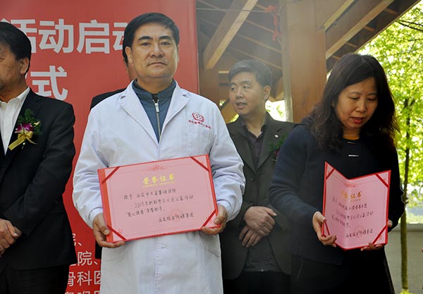 4月16日,由西安报业传媒集团主办,2016义诊进社区公益活动启动暨扶贫帮困捐赠仪式在水岸东方举行,西安晚报现场授予西安新城中大耳鼻喉医院2015年积极参与义诊公益活动“爱心使者”荣誉称号。